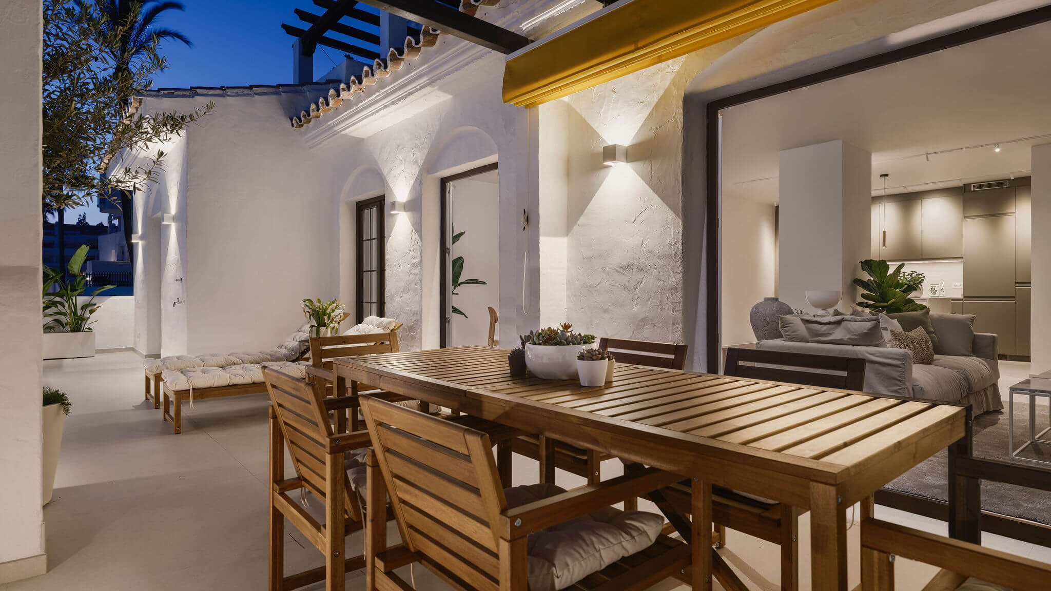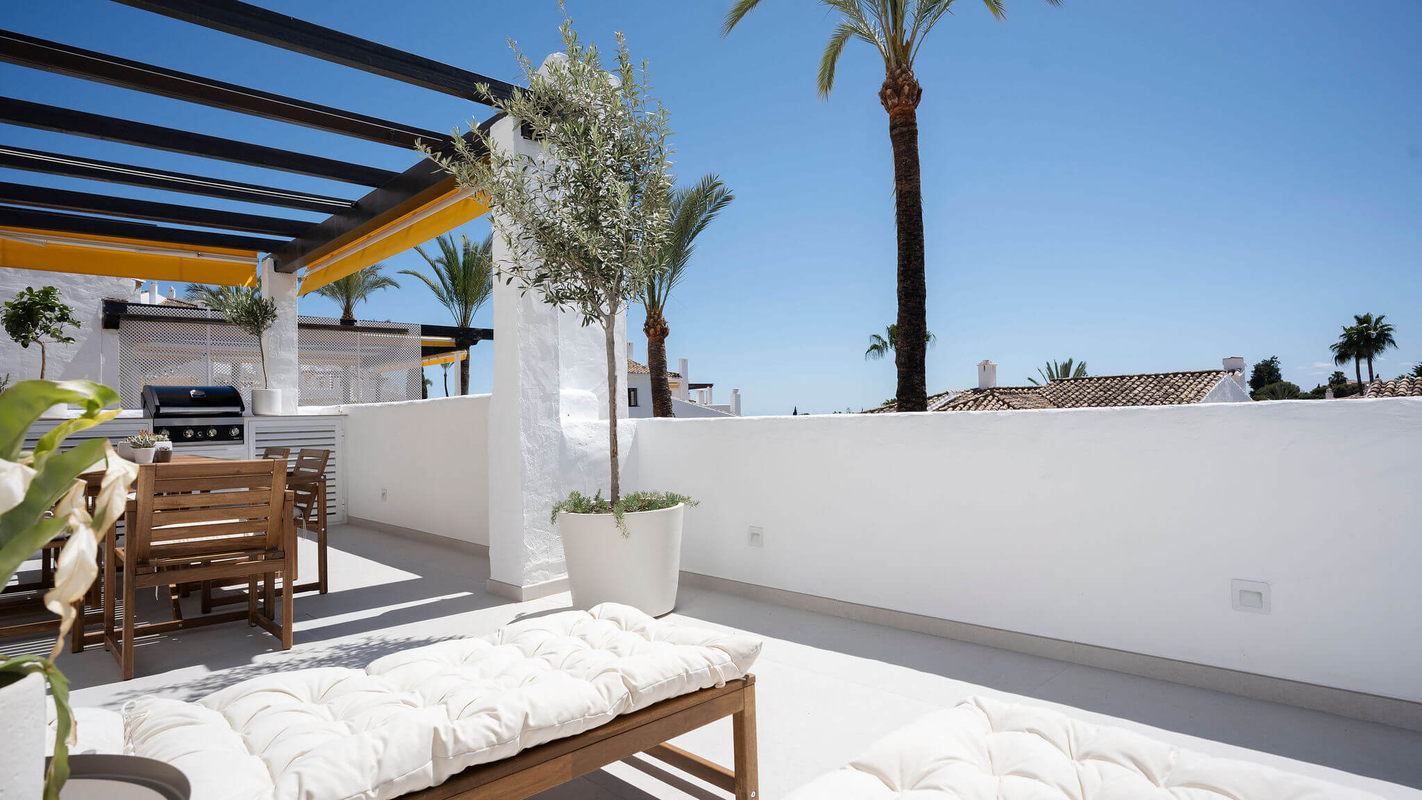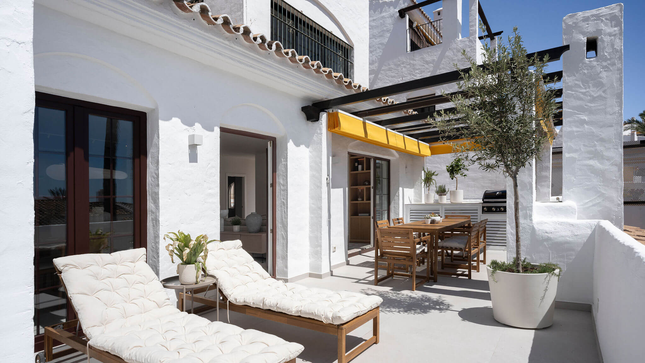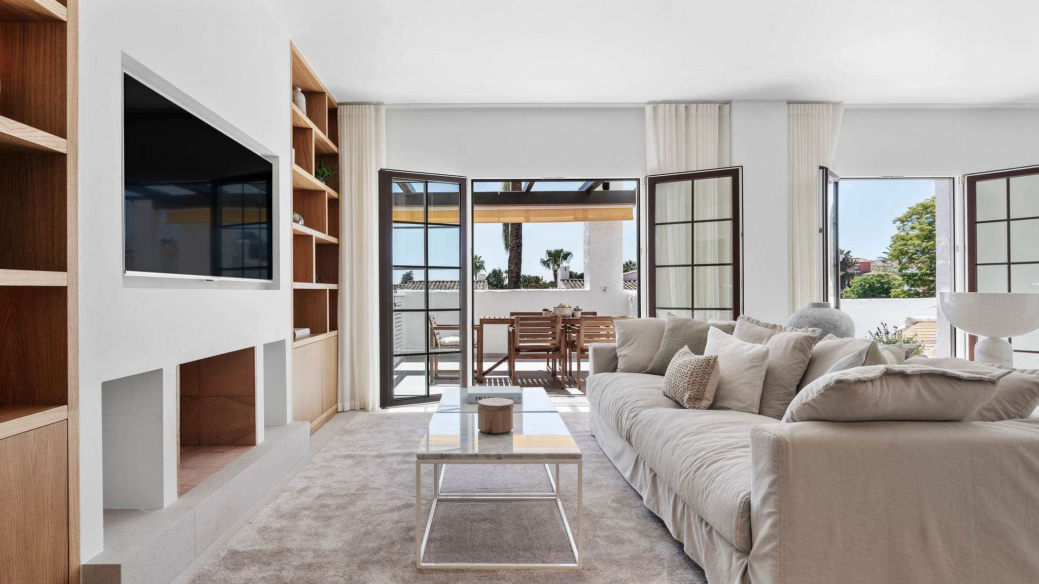 Completely renovated apartment in Aldea Blanca with 24-hour security. Features a spacious open floor plan, stylish materials, and custom-built furniture. Located in a popular and well-maintained community with an optimal location, within walking distance to Centro Plaza, Puerto Banús, and more. Furniture pack available for an additional 25,000 euros.