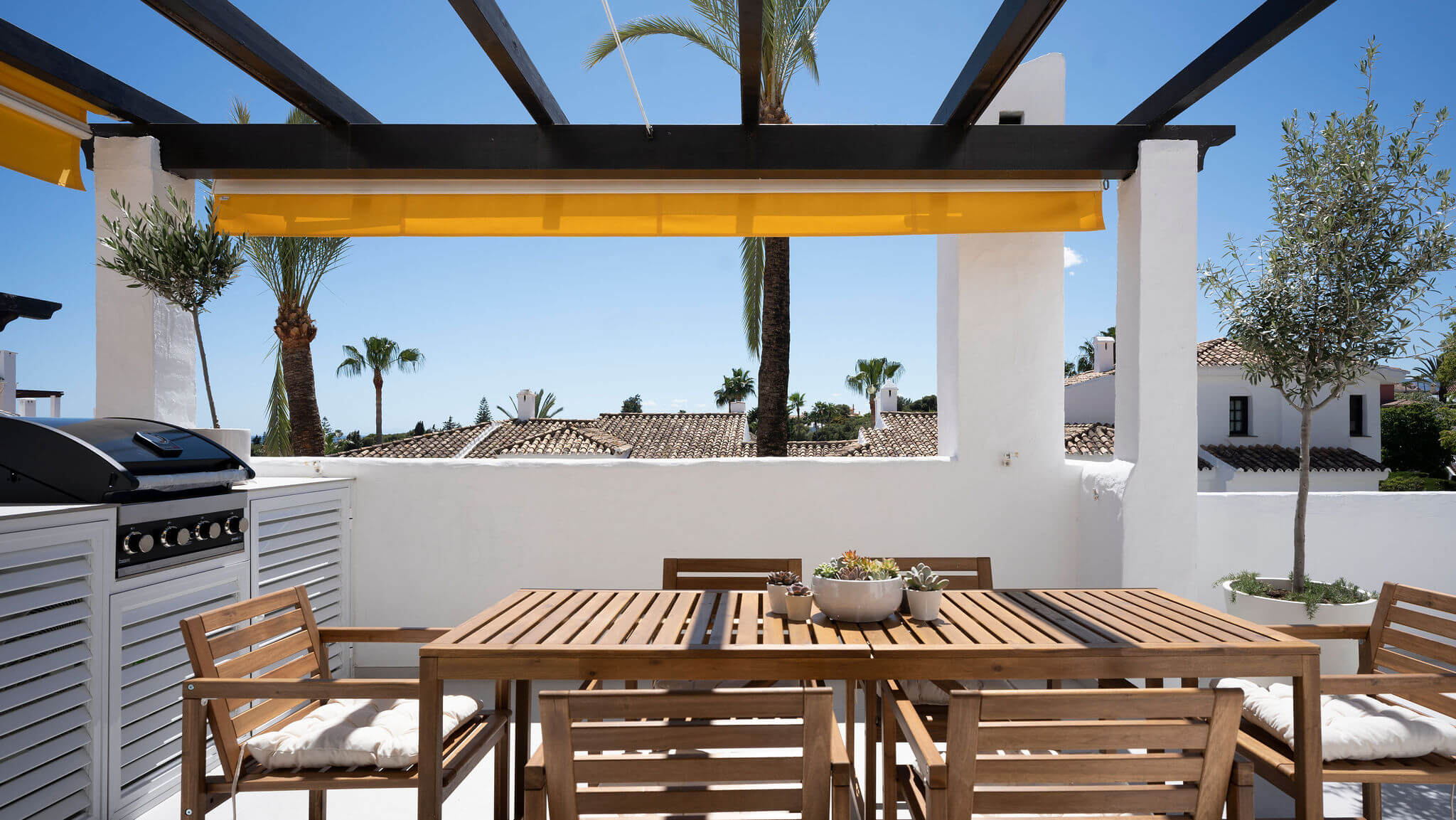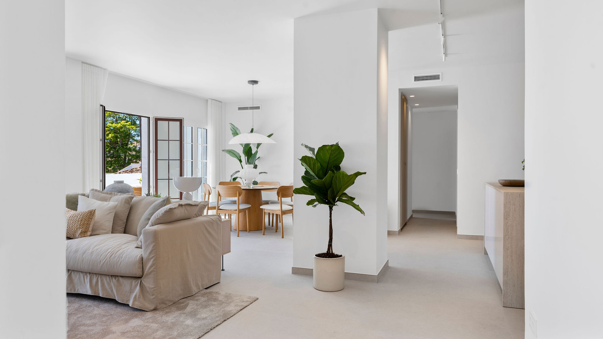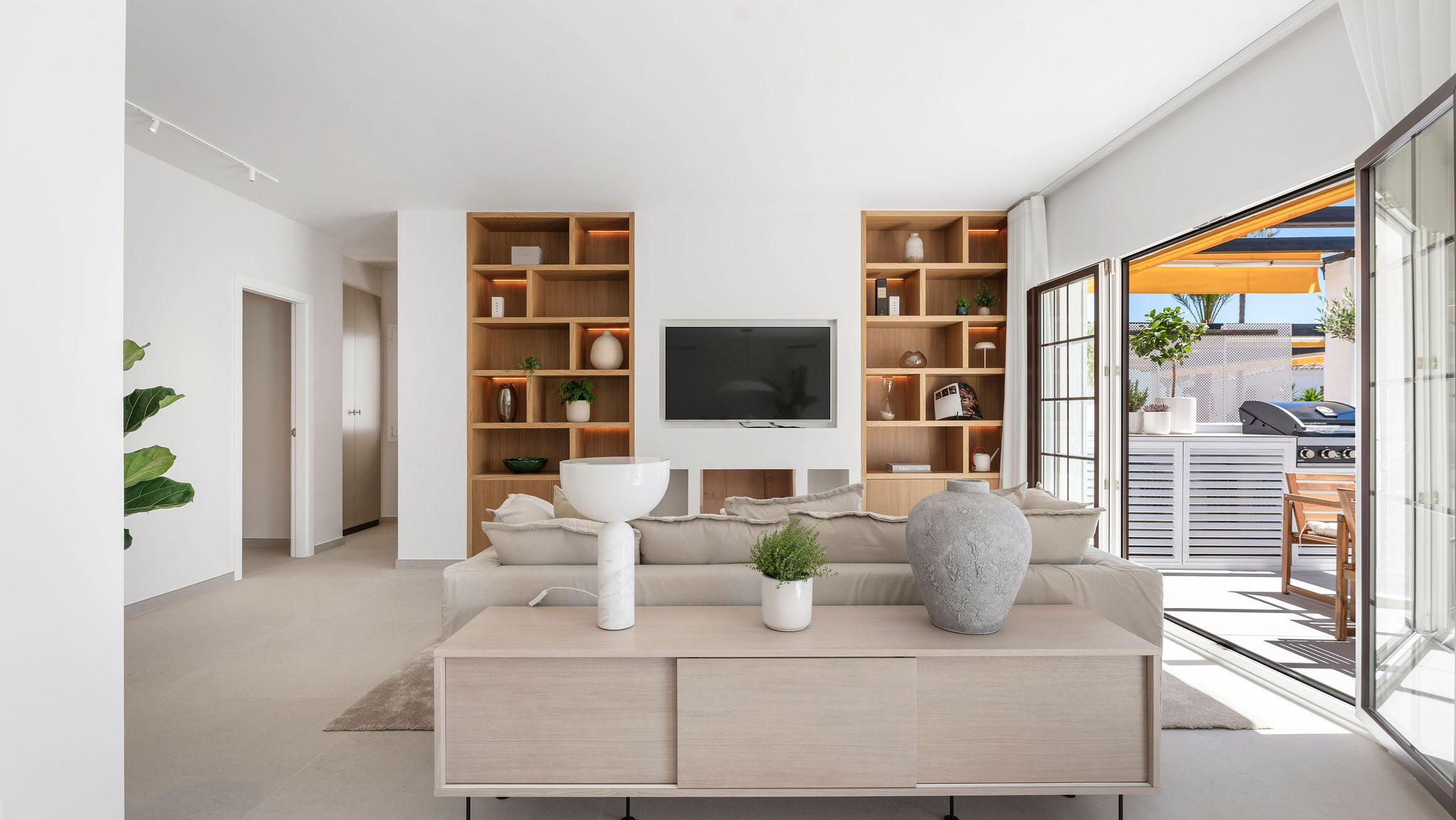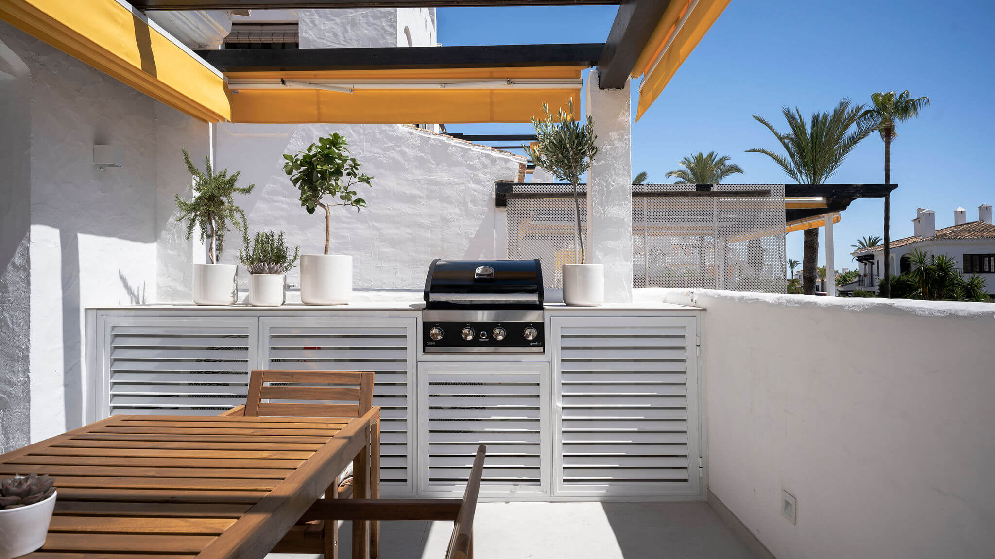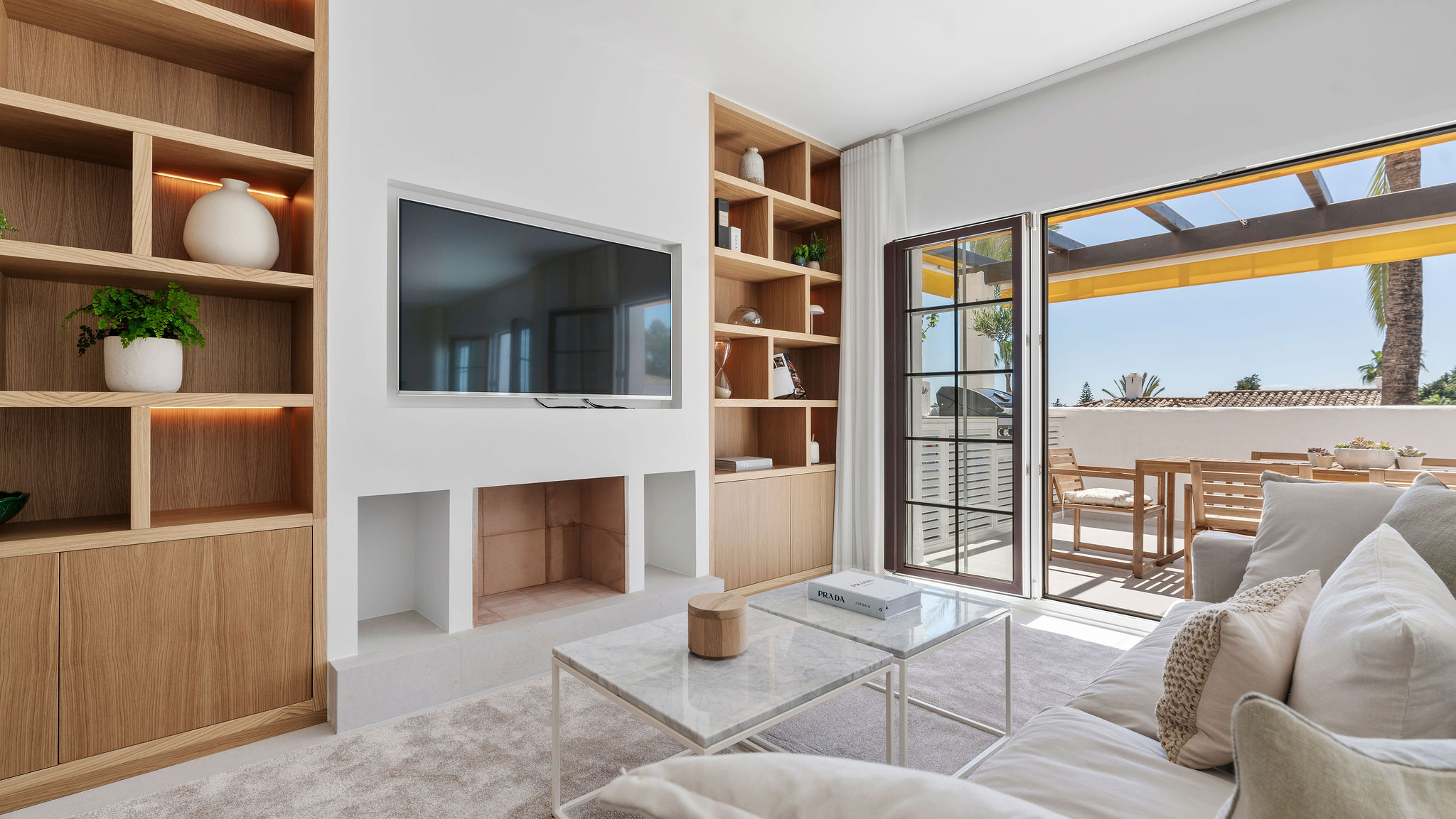 Completely renovated apartment in Aldea Blanca with 24-hour security. Features a spacious open floor plan, stylish materials, and custom-built furniture. Located in a popular and well-maintained community with an optimal location, within walking distance to Centro Plaza, Puerto Banús, and more. Furniture pack available for an additional 25,000 euros.